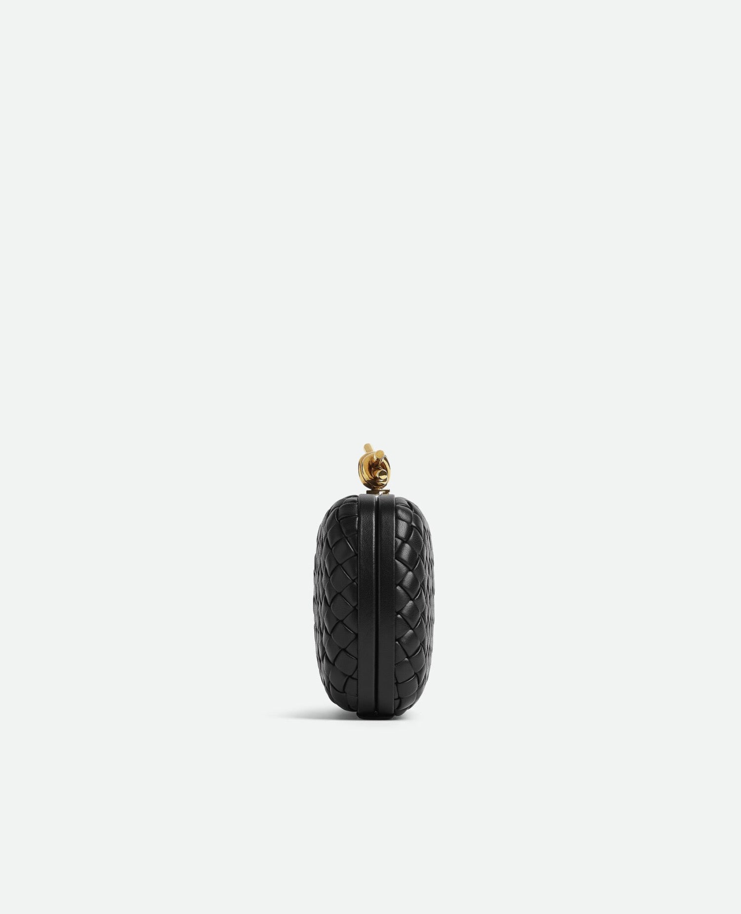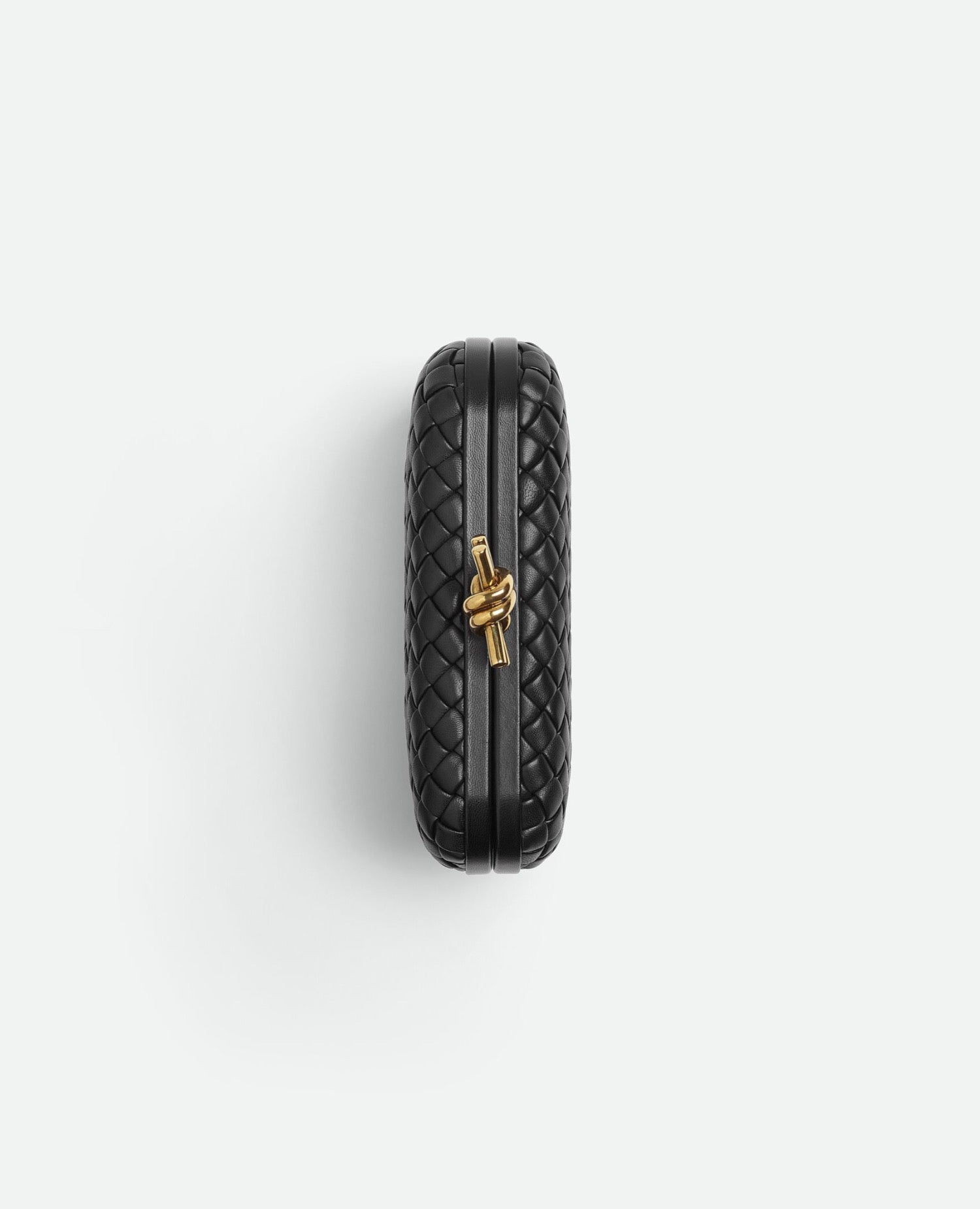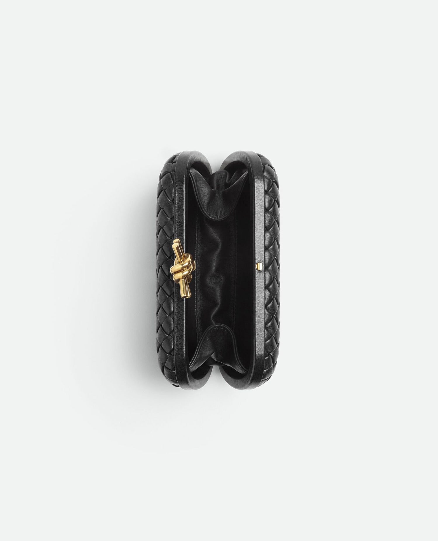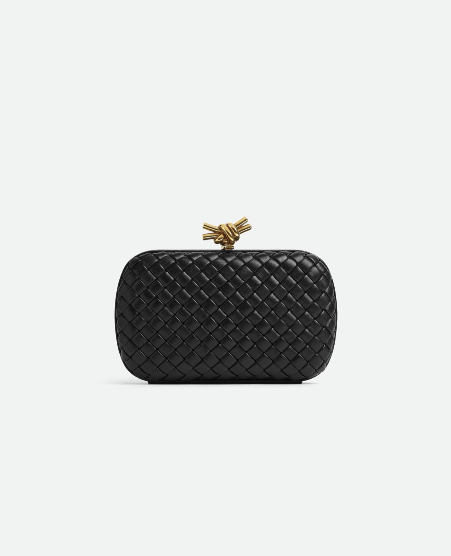 Minaudière clutch in padded Intreccio leather with signature knot closure.