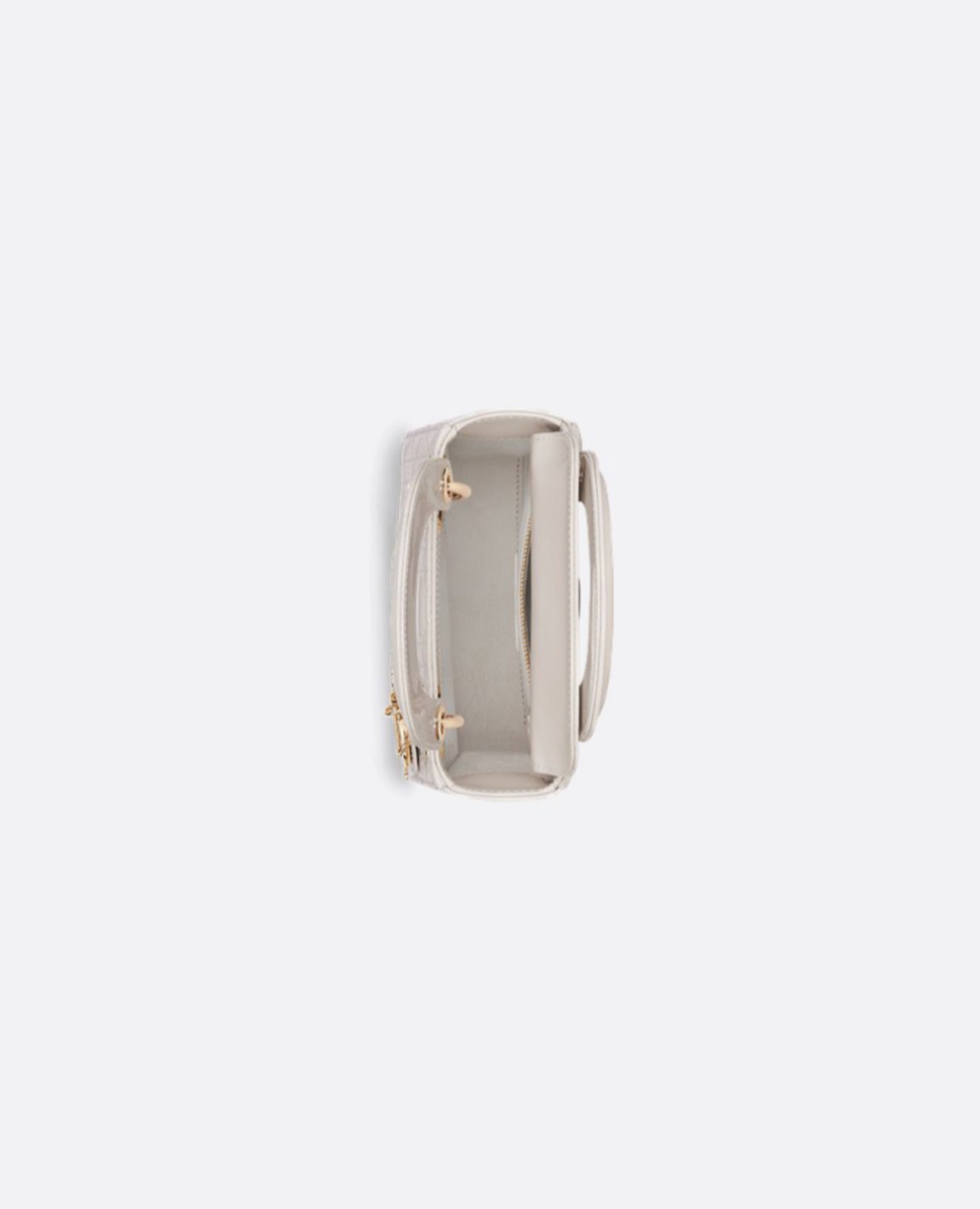 The Lady Dior bag perfectly embodies the House of Dior's vision of elegance and beauty. Refined and feminine, this creation is timeless. Crafted from latte-colored patent calfskin with Cannage stitching, it features a legendary quilted texture that's instantly recognizable. DIOR charms in pale gold metal enhance and illuminate its silhouette. Featuring a removable chain strap, this mini Lady Dior bag can be carried by hand or across the body and will be the perfect evening companion.