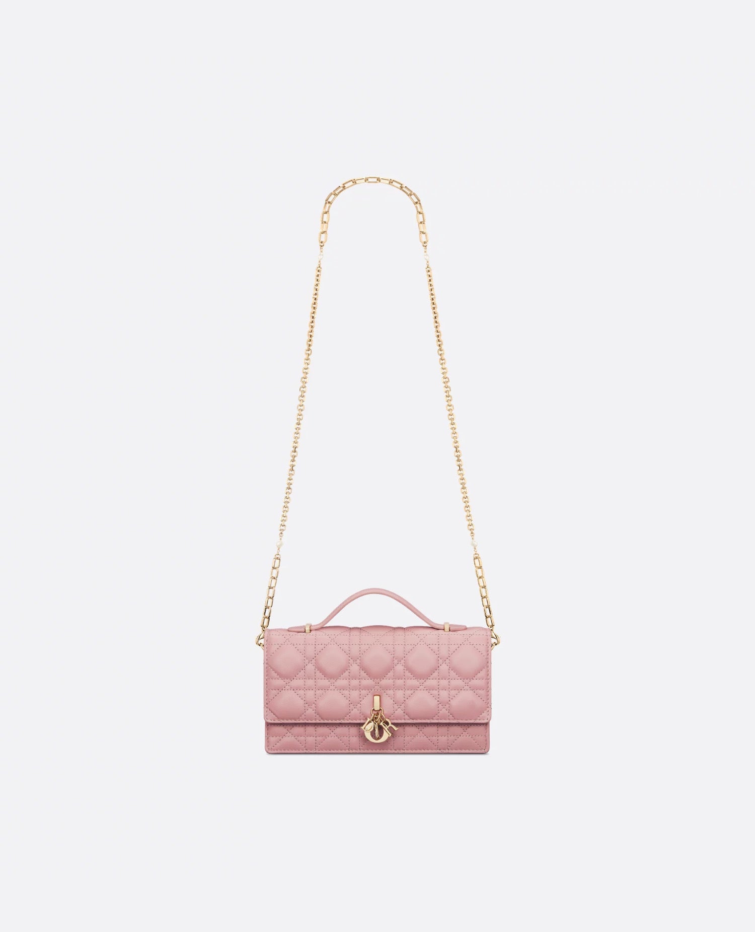 The Miss Dior Mini Bag Elevates The Line With An Elegant And Functional Design. Crafted In Antique Pink Cannage Lambskin, It Features A Flap Enhanced By The D.i.o.r. Charm On The Front.