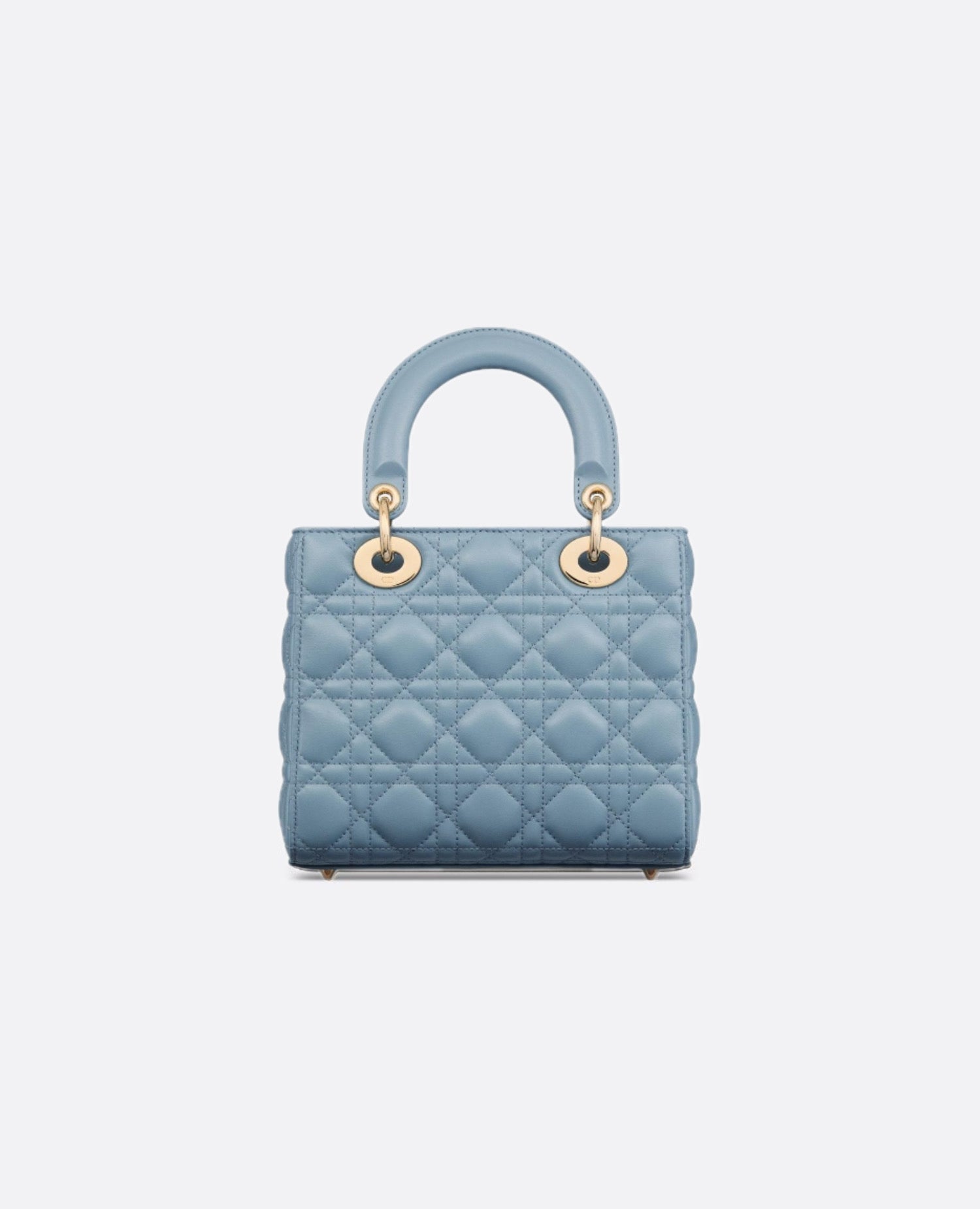 The Lady Dior My ABCDior bag epitomizes Dior's vision of elegance and beauty. Sleek and refined, the timeless style is crafted in denim blue lambskin with Cannage stitching, creating the unmistakable quilted texture. Pale gold-finish metal D.I.O.R. charms offer elegant appeal. Featuring a strap that can be personalized with symbolic badges, the small, unique design may be carried by hand or worn crossbody.