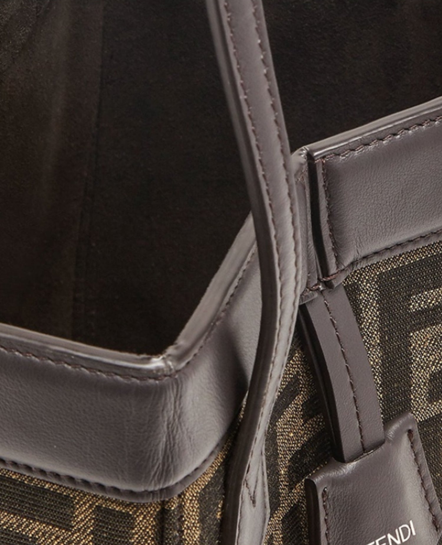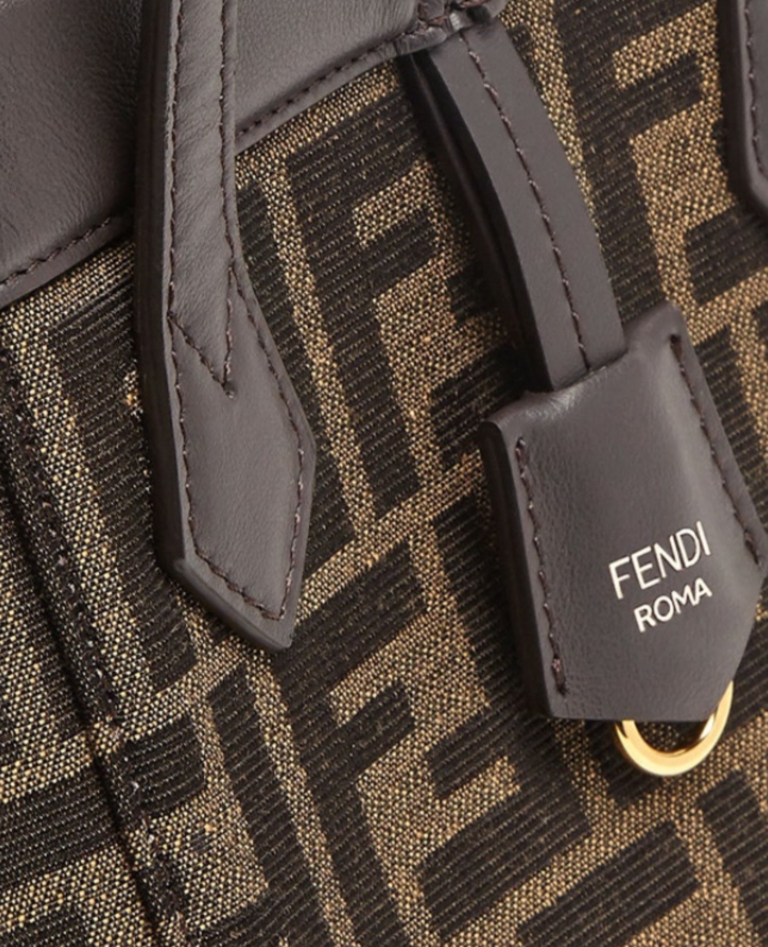 Mini Origami bag made of fabric with jacquard FF motif. The style recalls the dual nature and creativity of Fendi with an innovative design that can be transformed: the ingenious closure with eight magnets means the bag can be folded, origami-style, transforming it from a bucket bag – when the magnets come together in the middle with a magic clasp – into a shopper by gently pulling the short shoulder straps on each side.