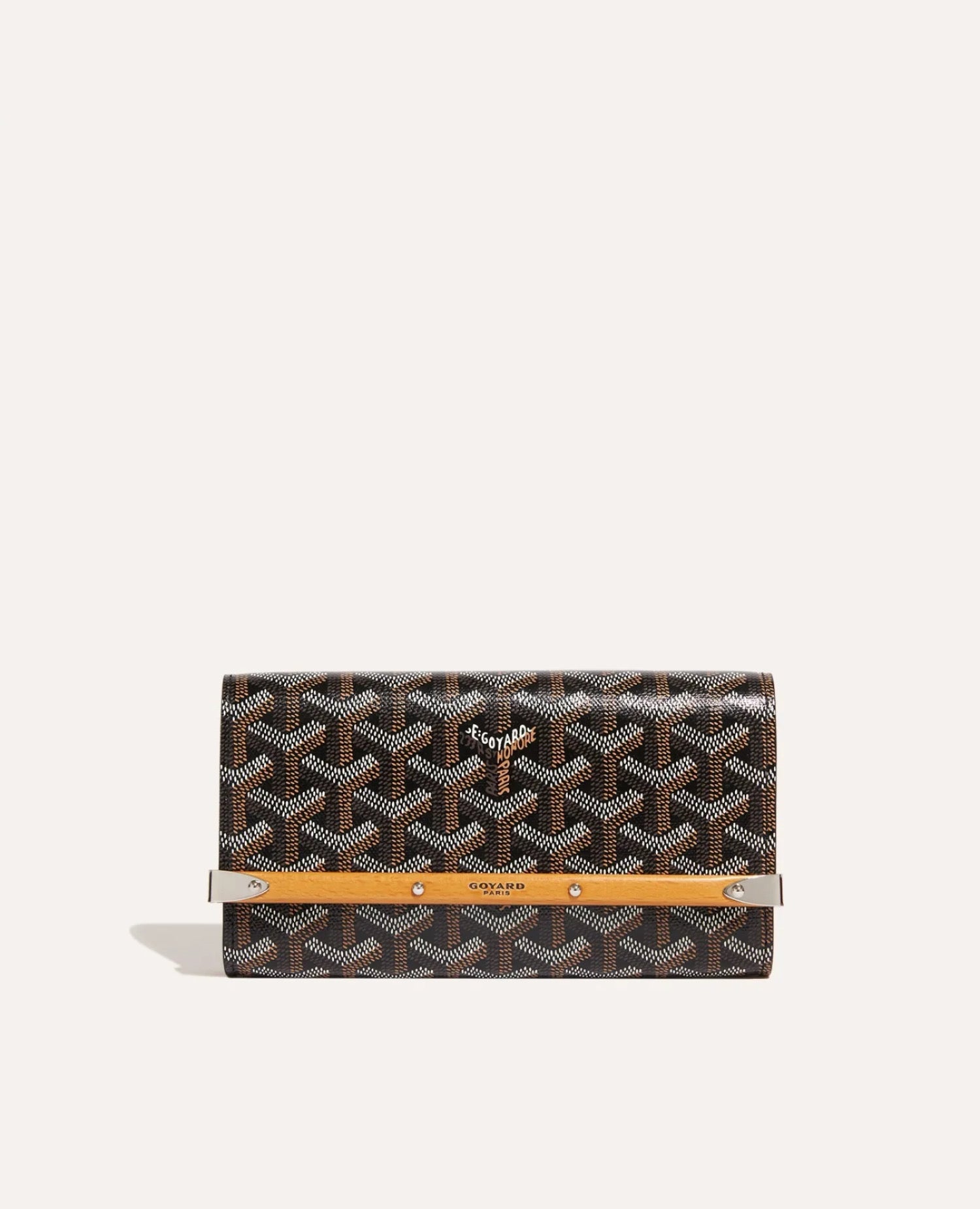 The Monte-Carlo Mini case revisits some of our signature trunk codes such as the wooden rod, bracket corners and trunk rivets. Designed as a case, it can be worn on a belt, with its two leather loops. It can also be worn across the chest with an additional PM strap.