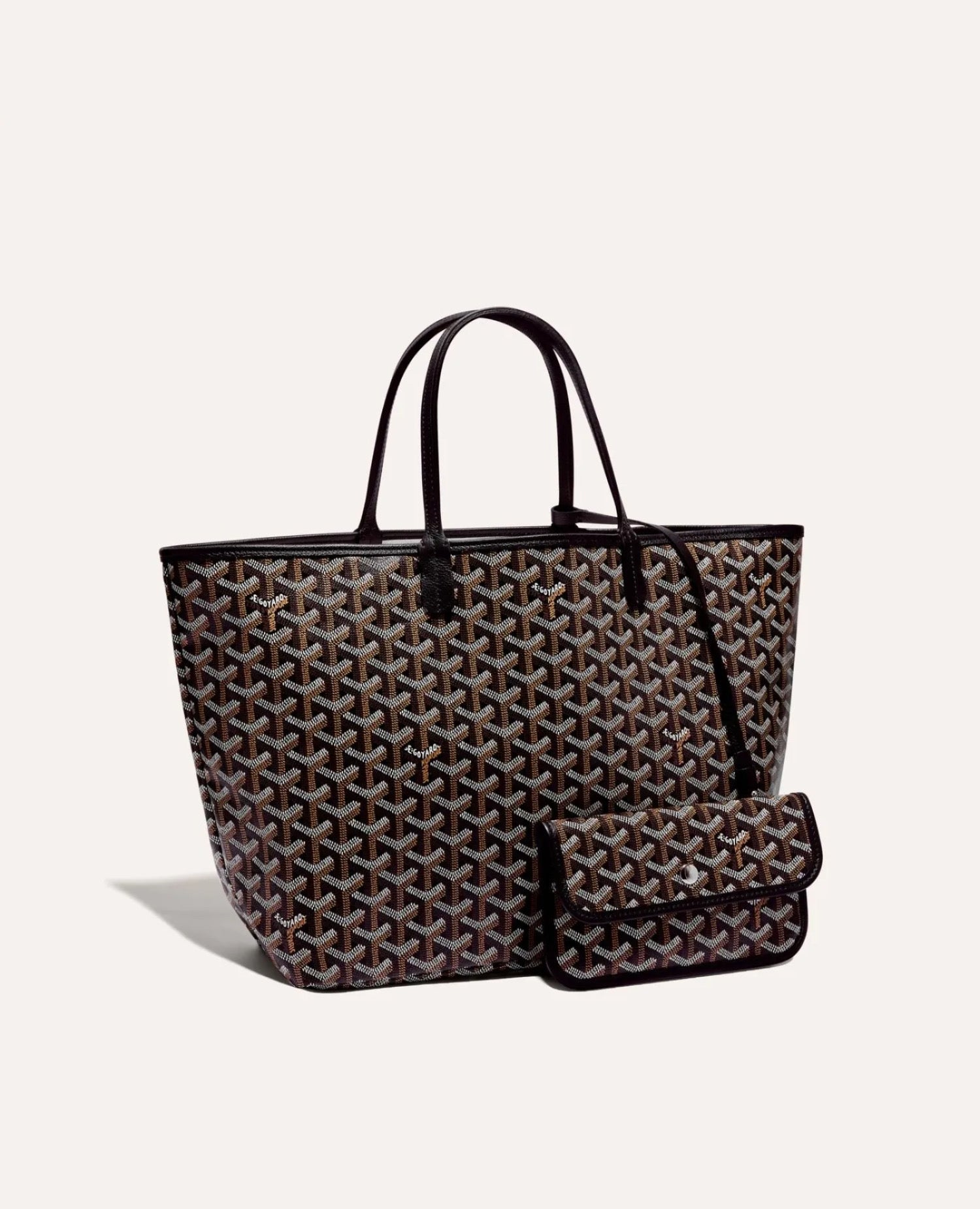 The Saint Louis PM bag is made from Goyardine and is unlined. It is extremely light and completely reversible. Wear it showing the Goyardine fabric or inside out, showing the linen and cotton mix. Its two leather handles with their progressive thickness mean it can be worn in different ways. It has a removable inside pocket attached to one of the handles for quick and easy access.