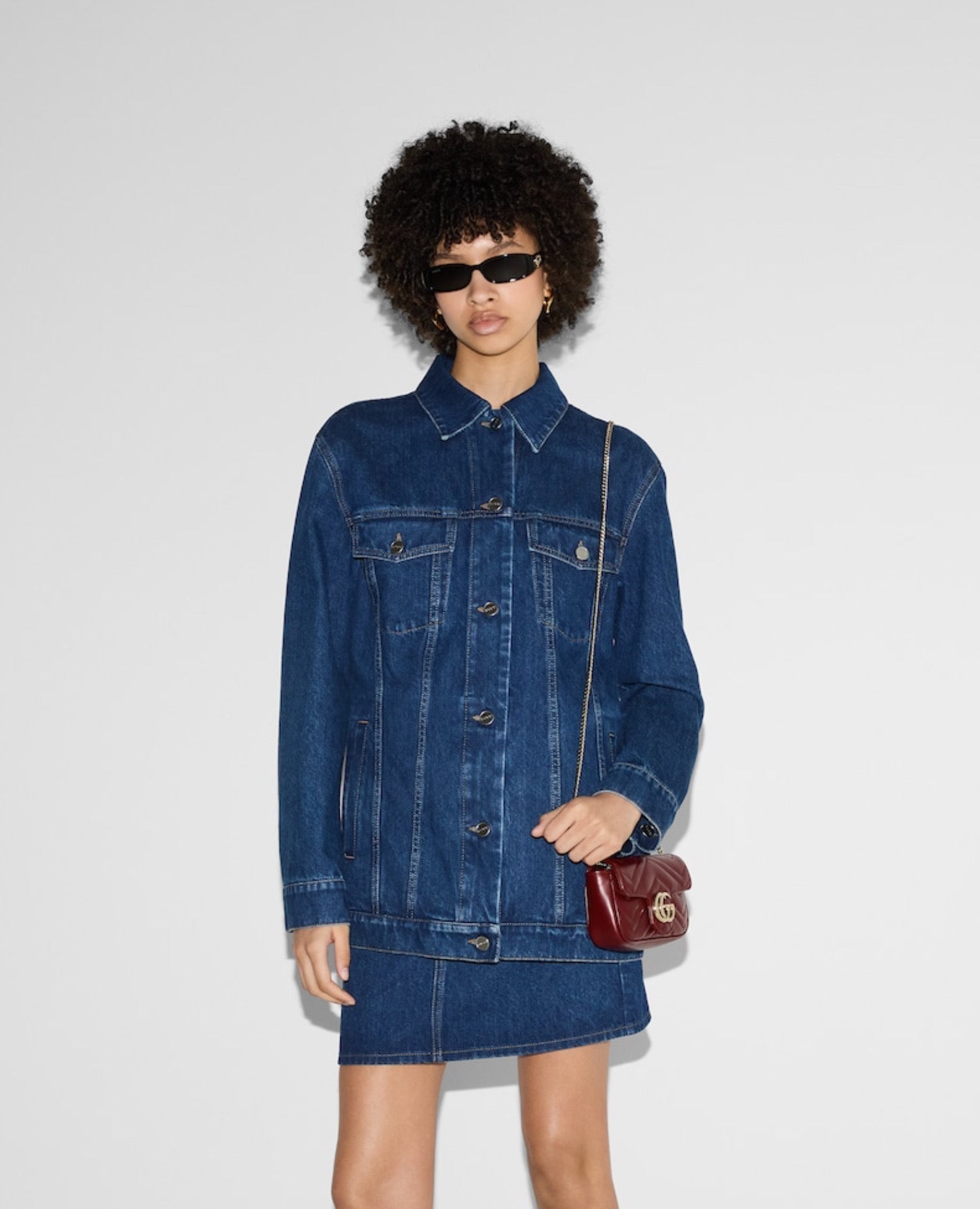Presenting the House's red hue Gucci Rosso Ancora on the GG Marmont, this super mini shoulder bag presents the style in a signature colour for Pre-Fall, complete with light gold toned hardware and ivory leather lining.