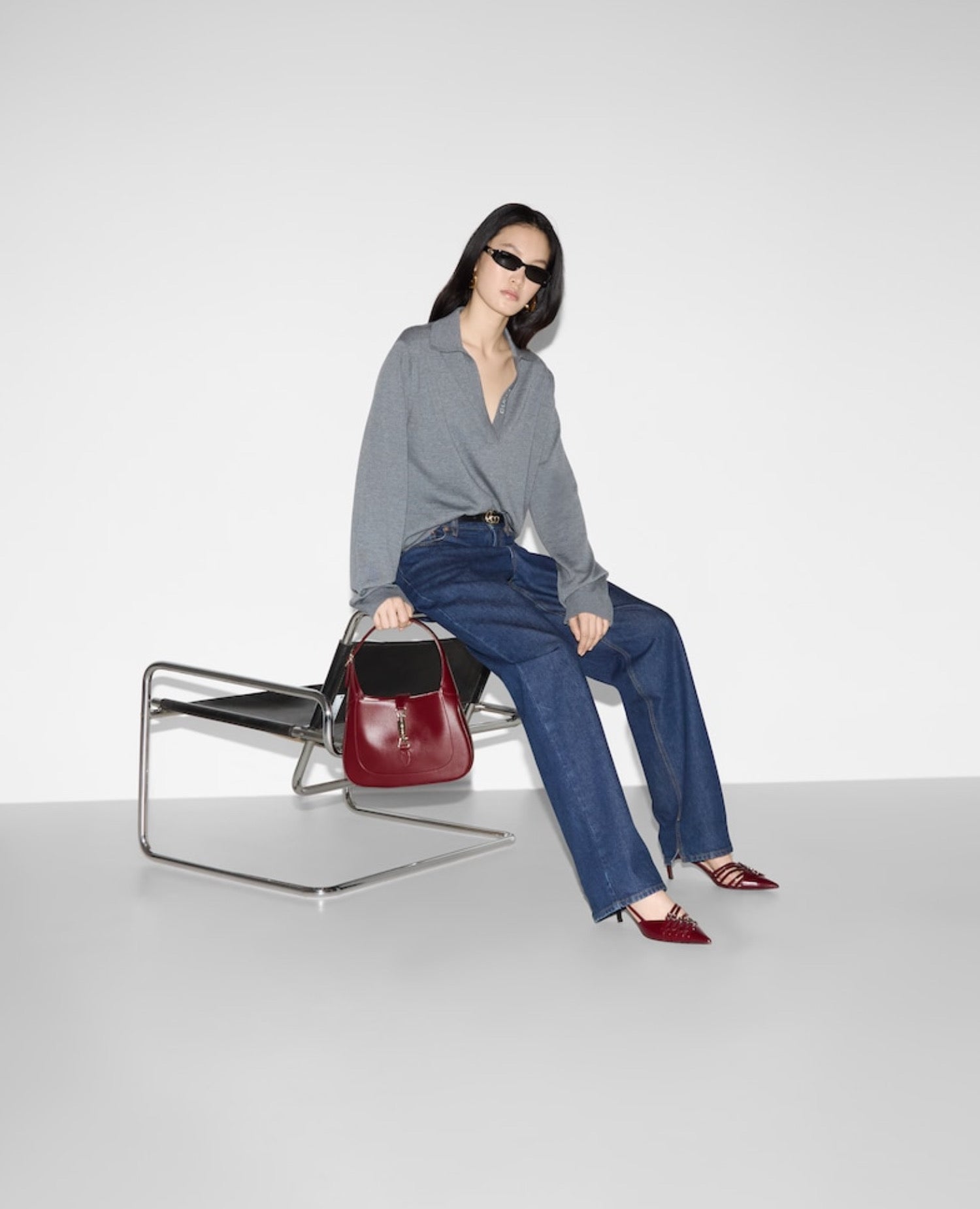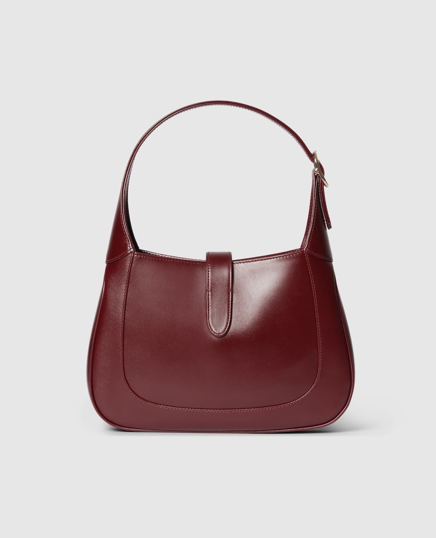 The Gucci Jackie 1961 is crafted from fine leather which highlights its craftsmanship, crescent shape, and sleek silhouette. Light gold-toned hardware, leather trim, and an additional strap featuring the green and red Web gives this Jackie 1961 small shoulder bag in Gucci Rosso Ancora leather, the signature red hue of the House, further styling options.