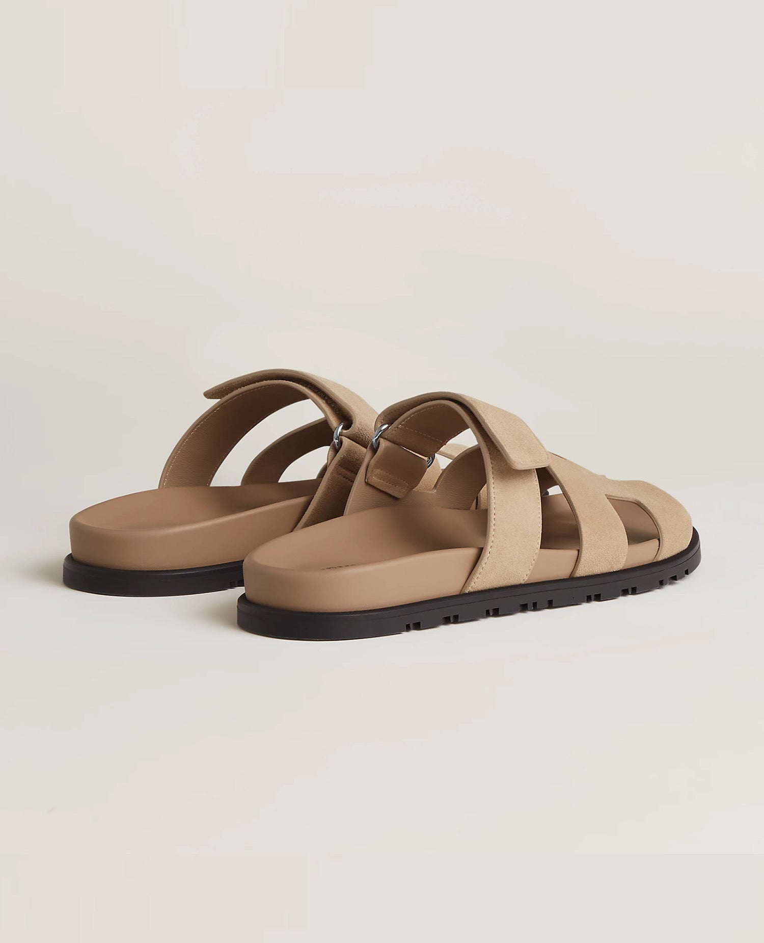 Techno-sandal in suede goatskin with anatomical rubber sole and adjustable strap.