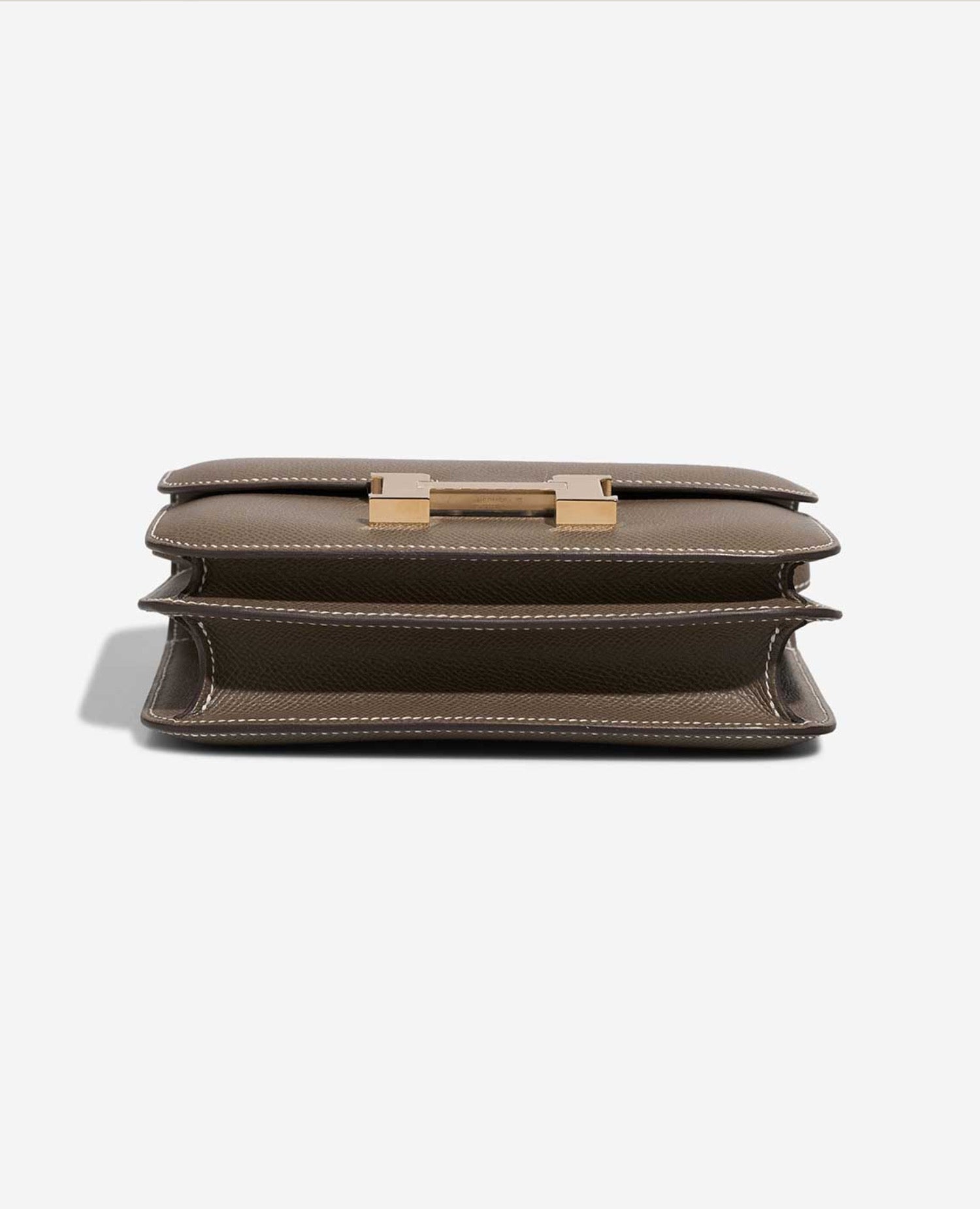 Elevate your accessories collection with this pristine Hermès Constance 18. Crafted in 2023 ("B" stamp) from durable Epsom leather in the sophisticated Étoupe shade, this bag embodies understated luxury. Its clean lines and iconic gold-plated 'H' clasp create a refined aesthetic that transitions seamlessly from day to evening. In unworn condition, this compact yet practical design offers organized interior compartments while maintaining a sleek profile for effortless chic.