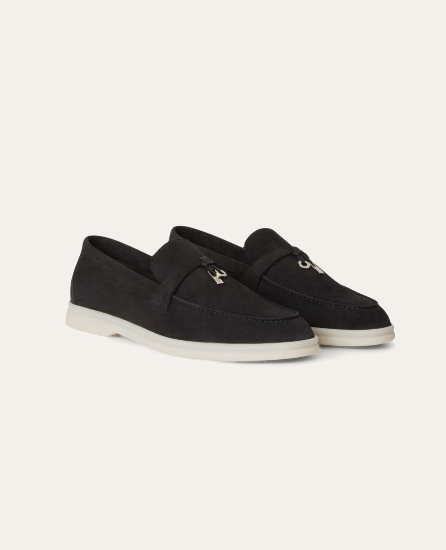 Comfortable, sporty loafers made from soft suede. They are enhanced with rubber soles — a common feature of all Loro Piana sportswear shoes. The front saddles are embellished with mini My Charms. Perfect for summers spent sailing, at the beach or in the city.