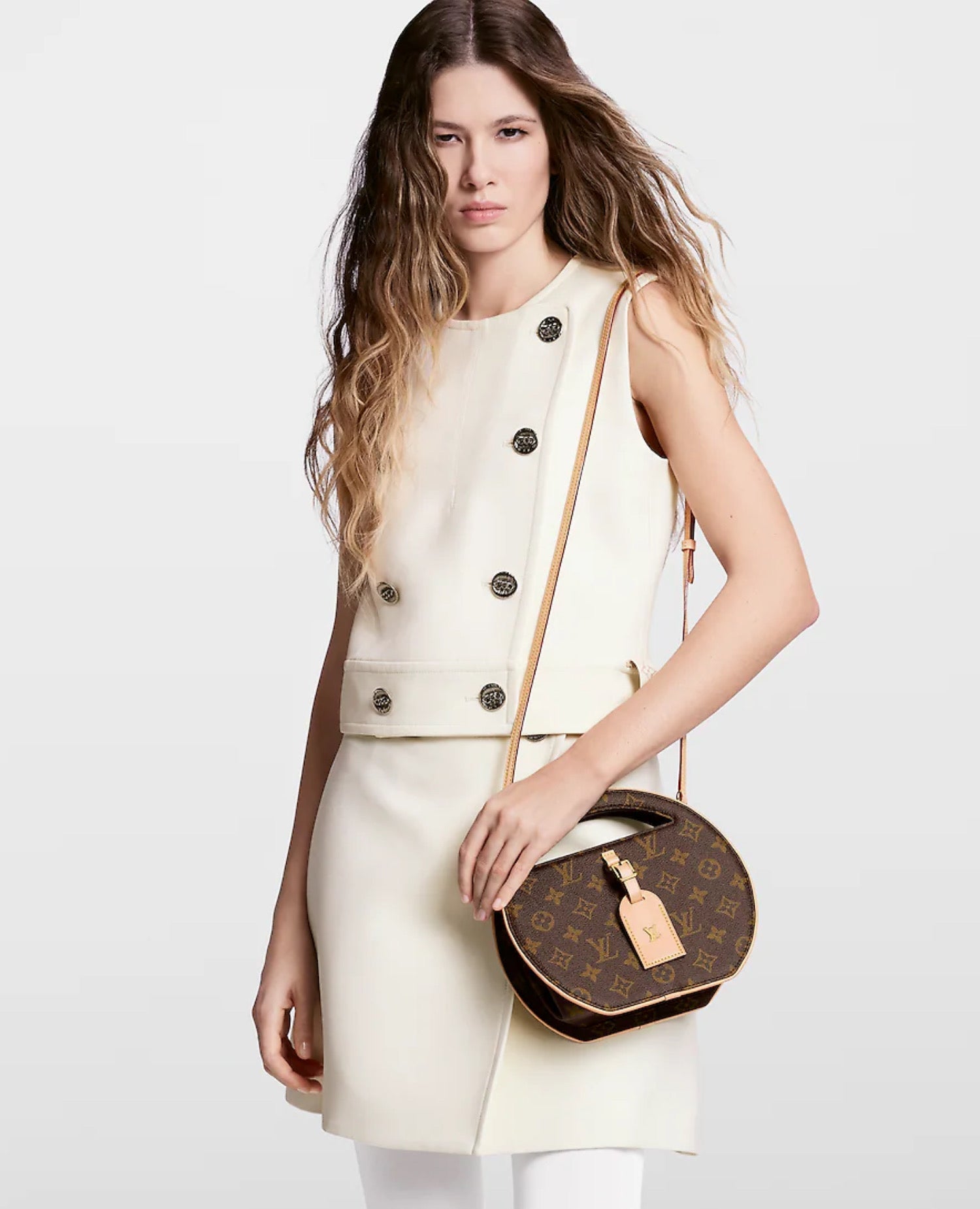 Made from Monogram coated canvas, the Around Me is inspired by the House’s LV Circle signature, an emblem from the 1920s used on Louis Vuitton storefronts and advertising. Seen at the Spring-Summer 2024 Show, this perfectly circular bag features integrated handles for a minimalistic yet elegant look. Its small size makes it adorably stylish.