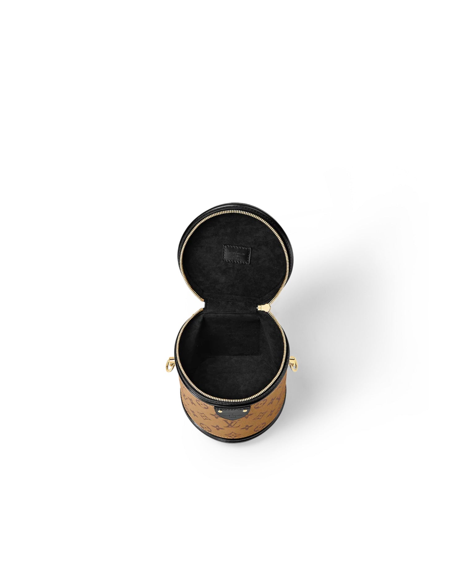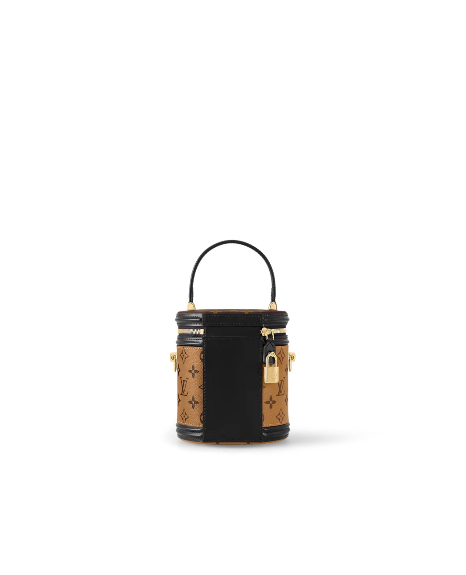 Featuring the historical shape of the LV Cannes beauty case, designer Nicolas Ghesquière revives a long-standing classic with the Cannes handbag. Petite in size and presented in a mix of Monogram and Monogram reverse coated canvas, the elegant piece reanimates a traditional silhouette steeped in Louis Vuitton heritage. A removable leather strap and top handle provide a range of carrying options.