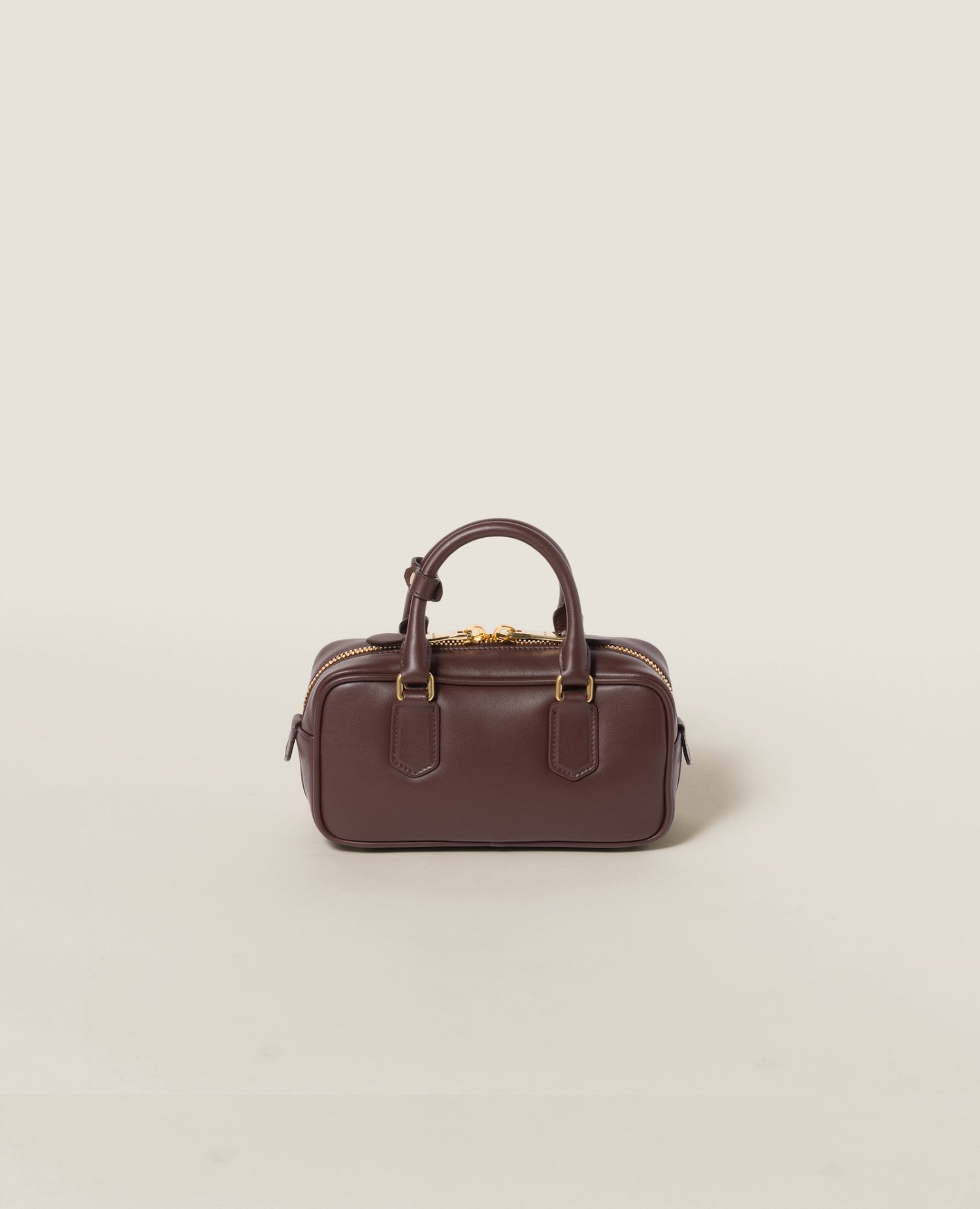 This Arcadie leather bag expresses a notion of fashion as a means of translating a reaction to current reality into material form. The light padding gives the bag a voluminous look and a cosmopolitan style. The lettering logo, which echoes the finishes of the metal hardware, crosses the boundaries between function and decoration and helps to define the distinctive and iconic aesthetic of the top-handle bag.